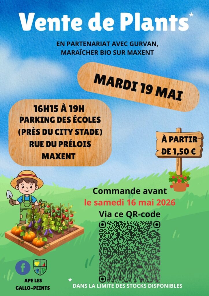 L’APE Les Gallo-Peints renouvelle son opération “Vente de plants” avec une livraison prévue le mardi 19 mai 2026.